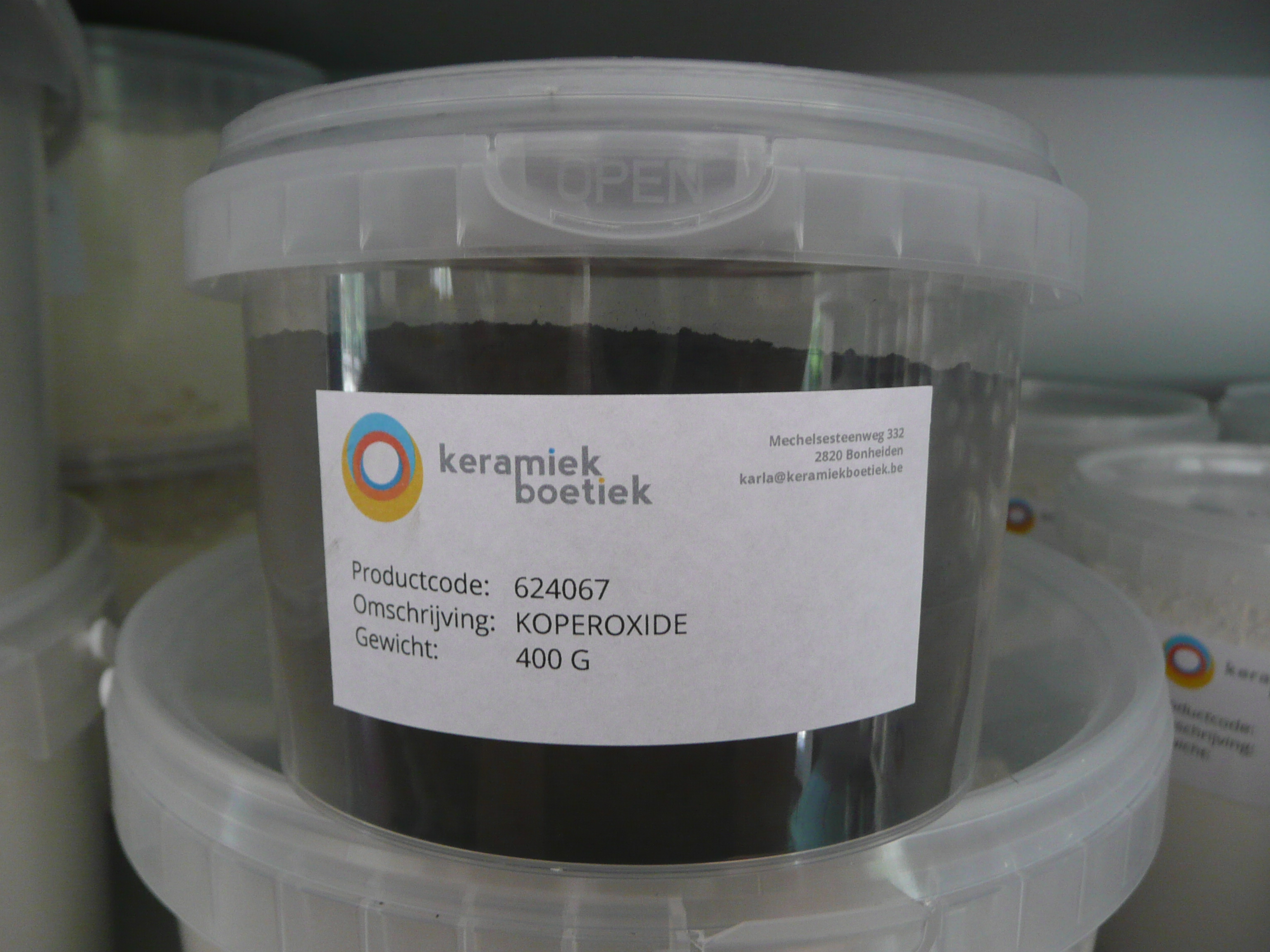 Groenkleurend oxide. Altijd apart stoken i.v.m. sympathiebrand, vooral in tinhoudende glazuren. In combinatie met lood kunnen roze en gele kleuren...